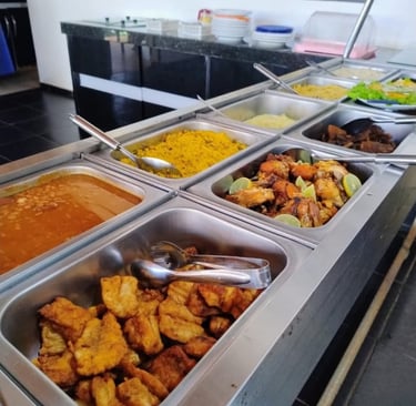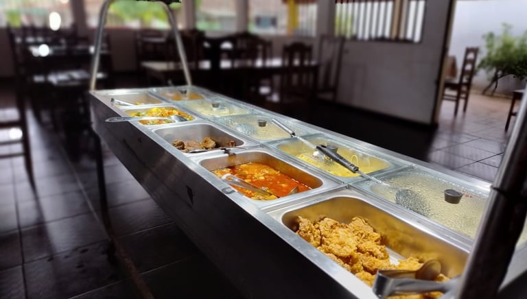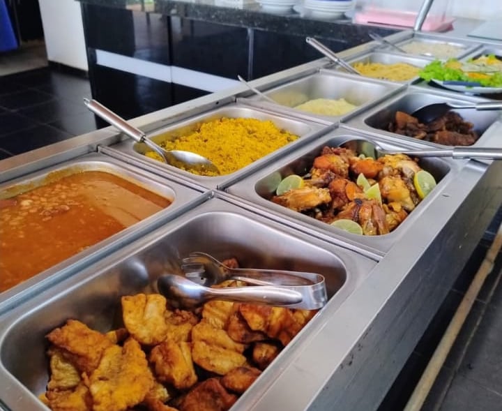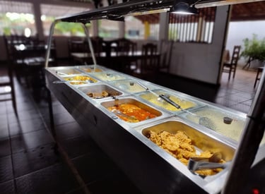 Self-service com cinco opções de proteínas diariamente e a opção de churrasco aos fins de semana, feito com toque caseiro da nossa gastronomia local.
